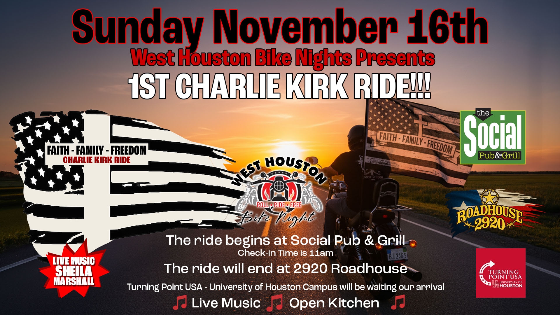 The ride begins at Social Pub & Grill Check-in Time is 11am The ride will end at 2920 Roadhouse Live Music Open Kitchen
